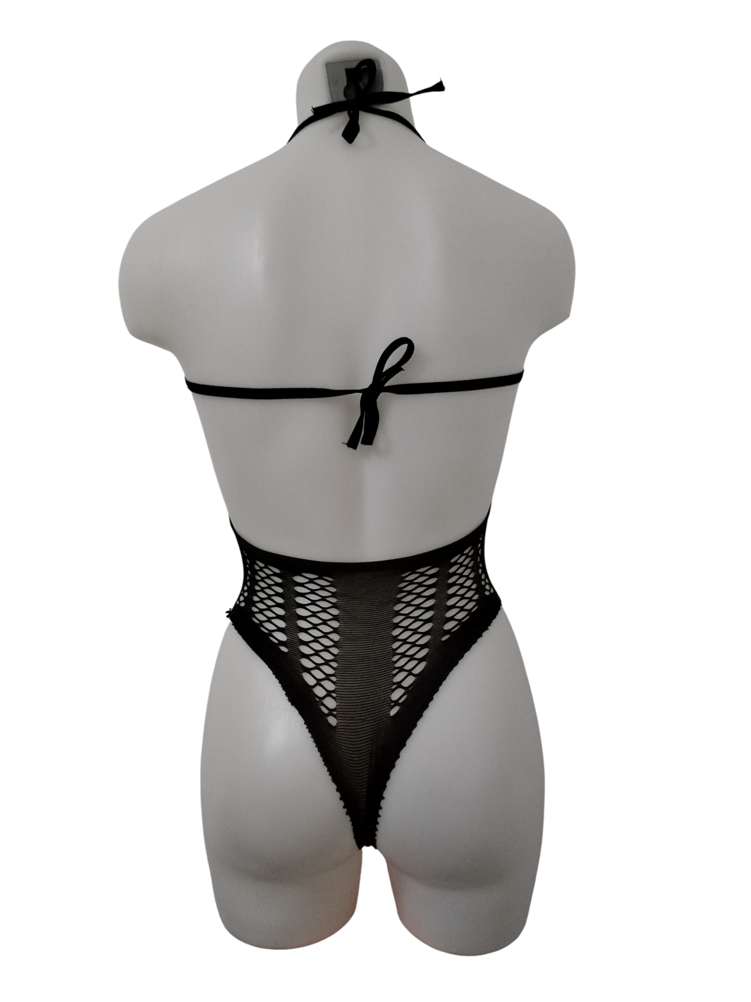 Un body donna nero a rete, dal design sexy e audace, che avvolge delicatamente la figura. Realizzato in materiale elasticizzato, offre una vestibilità perfetta e comfort, adattandosi alla silhouette con una leggera elasticità. Le chiusure regolabili al collo e dietro la schiena permettono di personalizzare la vestibilità, creando un effetto avvolgente e sensuale. La rete trasparente aggiunge un tocco provocante e moderno, mentre la taglia unica garantisce un adattamento ideale a diverse forme.